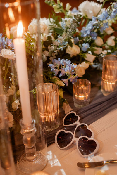 Our team offers delivery and set up of flowers and design details. Every event is unique, and your day-of staffing and design plans will be reflected based on your needs.
