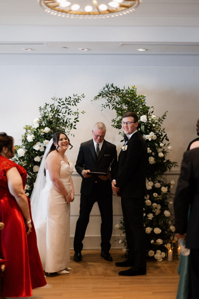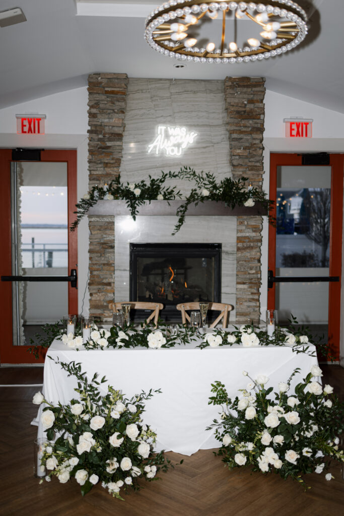 The ceremony was one of those quiet “wow” moments. Framed by the Jersey Shore, the white florals popped in the most subtle, sophisticated way, with clean tones and gentle movement that felt luxurious without overwhelming the space. Inside the reception at The Reeds, the florals carried that same energy—crisp, cohesive, and perfectly suited to the coastal interiors. The room felt warm, welcoming, and quietly glamorous.